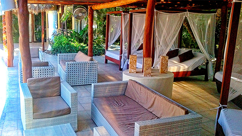 Where there was once only several swinging beds, these have now been replace with the newer and nicer beds as used around the pool and they have added several couches and chairs in the same area.